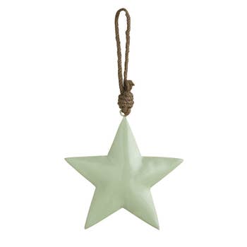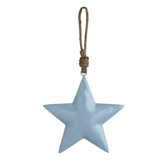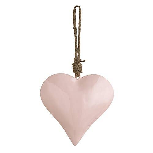 Enamel hearts and stars are 6" high and hang on a natural jute cord. Beautiful to hang on a doorknob!