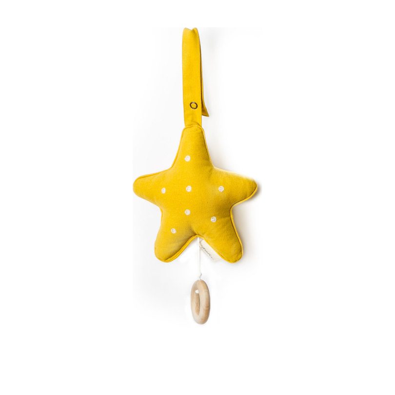 Music mobiles are giftable keepsakes that will long be cherished! Each special style plays, “You Are My Sunshine” to soothe and delight. Made of organic canvas with organic cotton embroidery detail and a FSC maple wood ring. Plus, the classic pull means batteries are never required. Packaged in a handmade box ready for gifting.